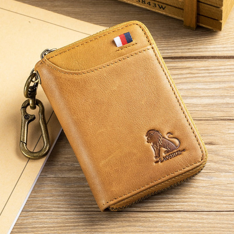 Creative Retro Crazy Horse Leather Key Bag Zipper Key Card Bag Vintage Genuine Leather Key Bag for Men and Women