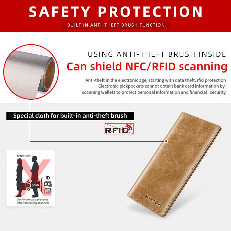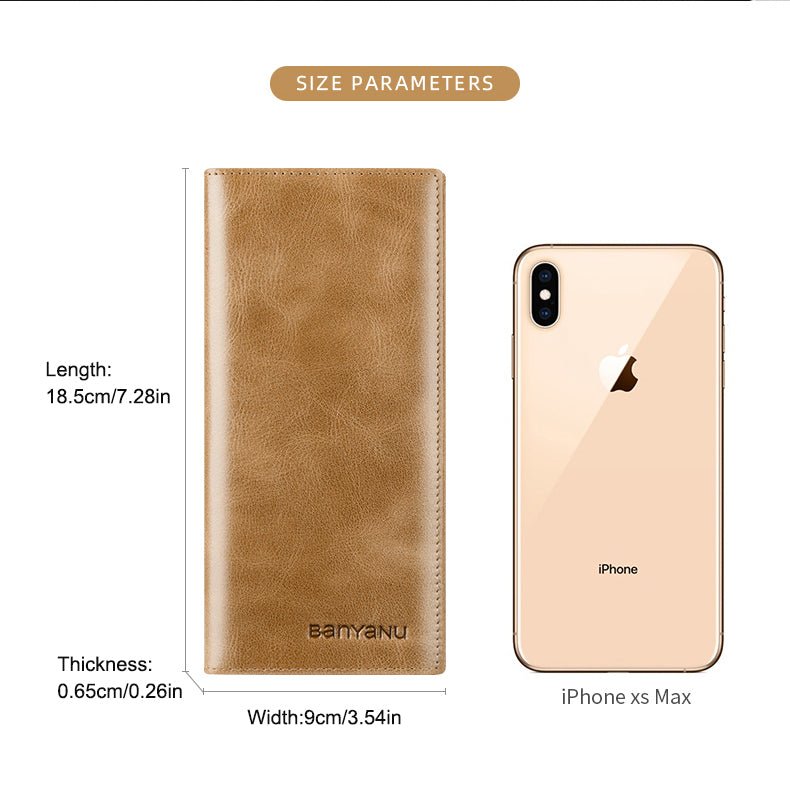 Men’s Slim Long RFID Wallet – Genuine Top-Grain Leather